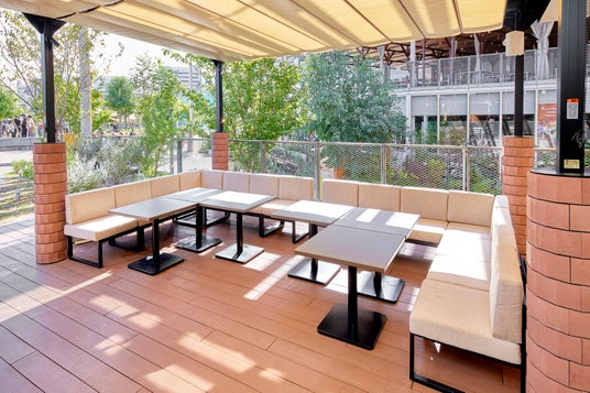 40席あるテラスはペット同伴可能なため、家族であるペットと一緒にてんしばのパークライフを楽しめます。ゆったりしたソファ席を設置し、席と席には程よい距離感を作っているため、ペットと一緒に快適な時間を過ごせる特等席です。
