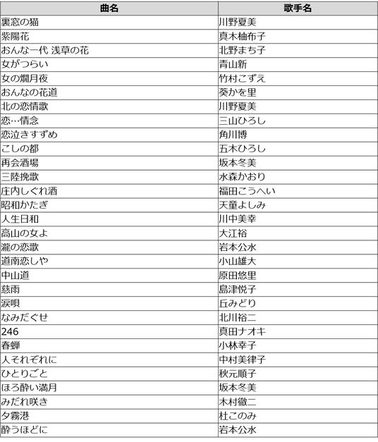 【カラオケ・オブ・ザ・イヤー:演歌・歌謡曲部門】カラオケで最も歌われた演歌・歌謡曲が対象