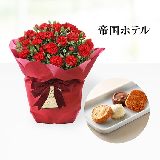 1.カーネーション 赤&<帝国ホテル>クッキー詰合せセット