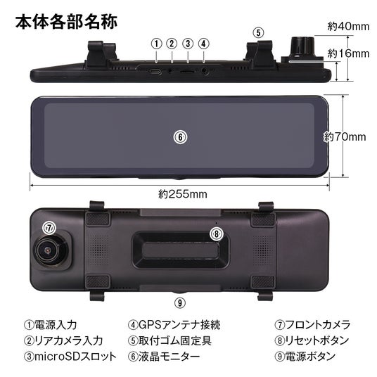 11inch前後同時録画機能付きゴムバンド取り付けタイプのデジタルインナーミラーMDR-G009#2