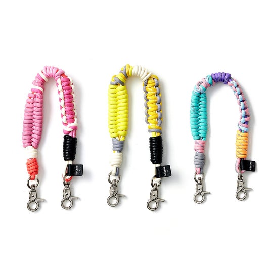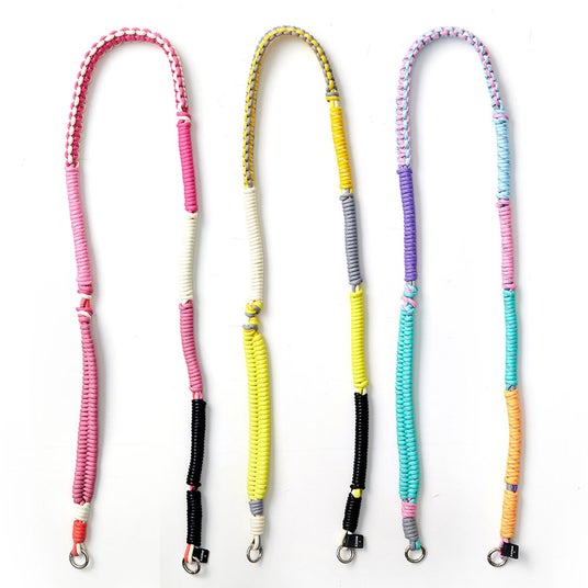 付属のホルダーを使用すると、簡単にお手持ちのスマホケースへドッキング可能。マルチなカラーリングが特徴の[unicorn]はリフレクターを織り込んだロープを編み込み、フェミニンになりすぎないアウトドア感を演出。