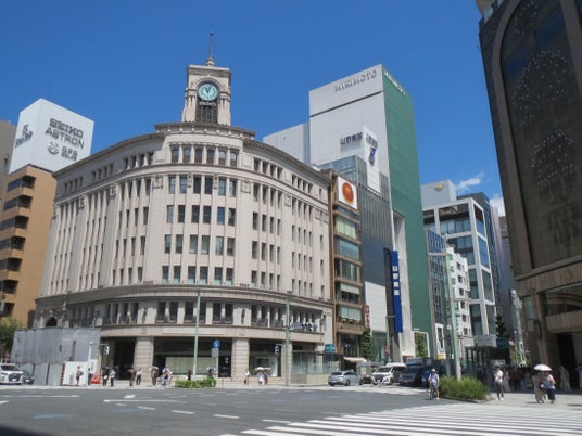 この西洋風の都市風景は、工事が進むにつれて計画が見直され、明治10年(1877)には街全体が完成しました。当初は払い下げ価格が高く、空きスペースも多く見られましたが、やがて新聞各社の建物や時計、輸入品を扱う商店、開化文物を製造販売する店舗が次々と並び、銀座は情報や文化の発信地として、文明開化のショーウィンドウとなりました。関東大震災や戦争の被害を乗り越えた銀座は、現在でも日本を代表する繁華街として、国内外の多くの人々を魅了し続けています。