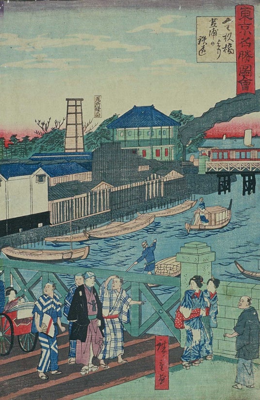 東京名勝図会 金杉橋より芝浦の鉄道 歌川広重(三代) 年不詳