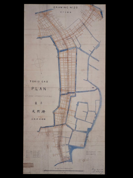東京瓦斯燈市街埋簡図絵 明治7年(1874)