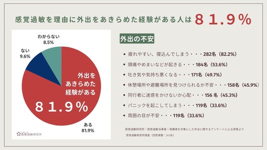 私たち感覚過敏研究所が行ったアンケートによると、『感覚過敏を理由に外出をあきらめたことがある』と答えた人は、全体の81.9%にも上りました。