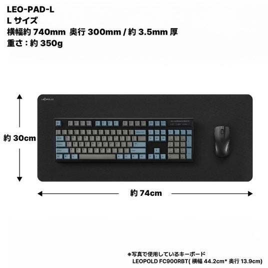 ・Lサイズ:横幅 約740mm x 奥行き 約300mm x 厚さ 約3.5(±0.5)mm /約350g