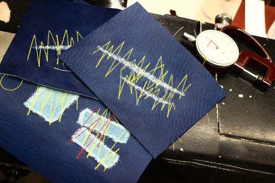ある日、ウチの革職人が余った革を使ってダメージ加工をしていた。