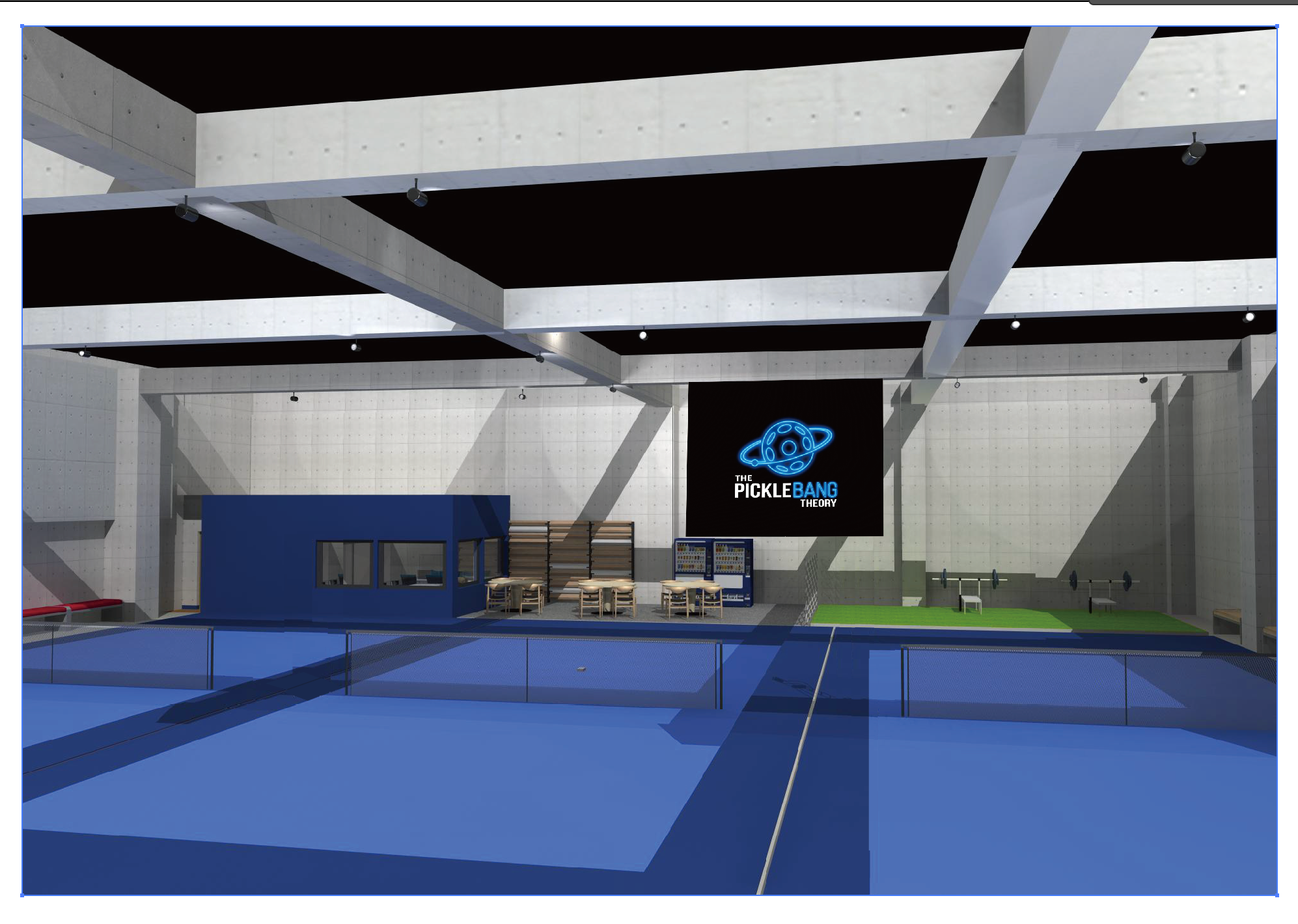施設名である THE PICKLE BANG THEORY は、宇宙の始まりとされる ビッグバン(Big Bang) に由来しています。宇宙がビッグバンによって誕生したように、この場所から新しいピックルボール文化が広がり、大きなムーブメントへと発展していくことを願い名付けました。