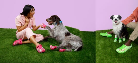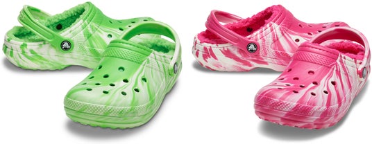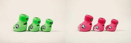 「ペット クロックス ブーツ」は大切な4本足の家族・大親友のためにデザインされたコスチュームです。アメリカ本国の会社「BARK」とコラボレーションによって誕生した本製品は人間用のフットウェア「クラシック ラインド クロッグ」と同じデザインになっており、愛犬と一緒にお揃いのコーディネートを楽しむことができます。どちらもマーブル模様のデザインになっており、グリーン・スライムとピンク・ドラゴン・フルーツの2色展開となります。