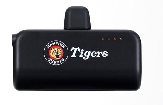 阪神タイガースのロゴが入った、容量5,000mAhのモバイルバッテリーです。阪神タイガースのヘルメットカラーをイメージし、通常製品のバリエーションにはない「ブラックカラー」を採用。また、容量が一目でわかるLEDランプのカラーには、阪神タイガースをイメージした黄色をセレクトしました。