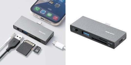 サンワサプライ株式会社(本社:岡山市北区田町1-10-1、 代表取締役社長 山田 和範)が運営している直販サイト『サンワダイレクト』では、USB-A×1、USB-C×1、SDカード、microSDカード、3.5mmイヤホンジャックの合計5つを搭載した、ケーブルレスでコンパクトなスマホ・タブレットに直付けできる、USB-C接続の5 in 1 マルチUSBハブ/カードリーダー「400-ADR339GM」を発売しました。