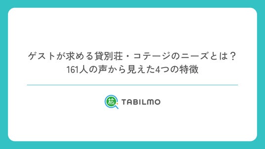 東京都渋谷区に本社を置く鵜山リゾート株式会社(代表取締役:鵜山康宏)が運営する貸別荘・コテージ宿泊予約サイト「TABILMO(タビルモ)」では、これまで貸別荘やコテージに宿泊したことのある全国の男女161人を対象にアンケートを実施し、「ゲストが求める一棟貸し施設のニーズや特徴」を明らかにしました。