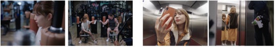 TRN EDGEを着用したトレーニング編では、川口さんがジムでトレーニング中にスマートフォンを落としそうになりますが、見事に足元でキャッチ、隣でトレーニングしていた人とグータッチするシーンでは、川口さんの自然体で親しみやすい一面が描かれています。また、CORE HERITAGEを着用したエレベーター編では、川口さんがエレベーター内の鏡で自分のファッションをチェックしている様子が映し出されます。フロアに停まり乗り込んできた乗客に気付かず、照れくさそうにする川口さんの愛らしい演技にも注目です。