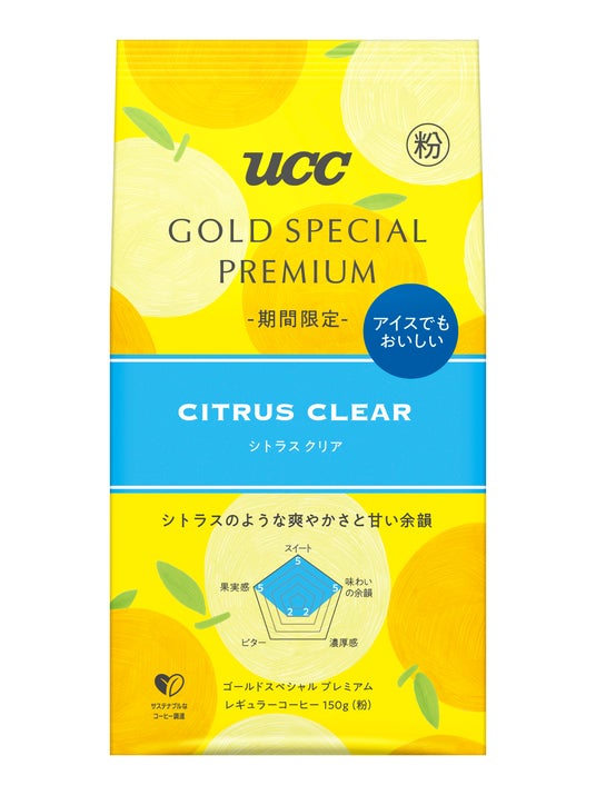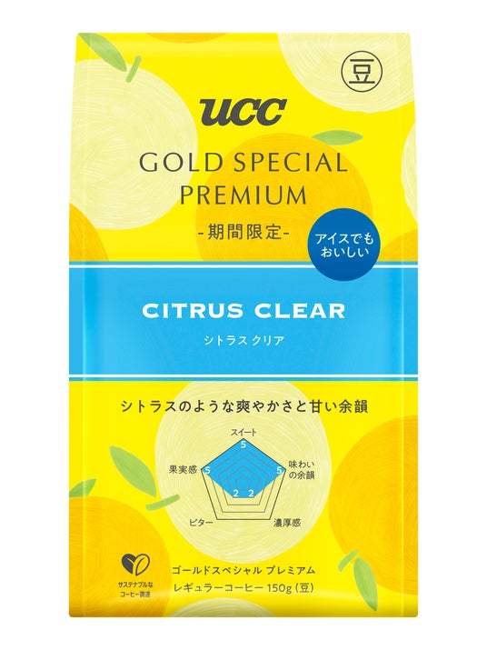 UCC上島珈琲株式会社(本社/兵庫県神戸市、資本金/10億円、社長/朝田文彦、以下UCC)は、「発見のあるコーヒー」をコンセプトとした『UCC GOLD SPECIAL PREMIUM』ブランドより、春夏通して楽しめる期間限定ブレンドとして、アイスコーヒーで飲んでもおいしいレギュラーコーヒー「CITRUS CLEAR(シトラスクリア)」の炒り豆製品と粉製品を3月3日(月)に新発売します。