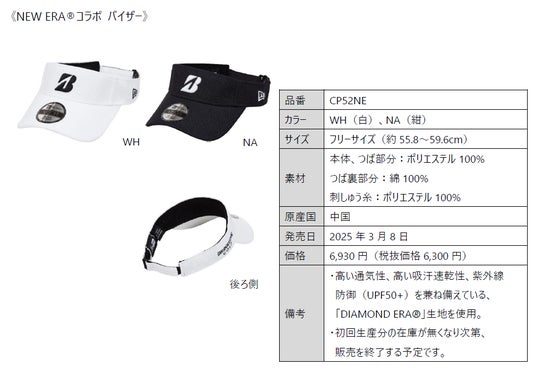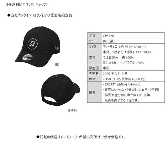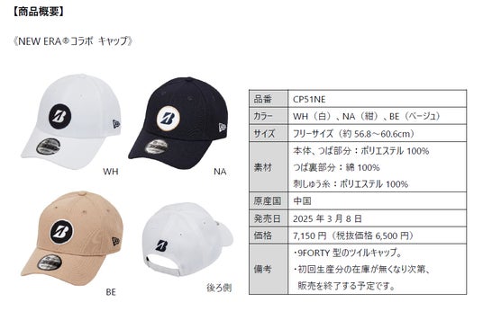 ブリヂストンスポーツ株式会社は、ゴルフを楽しむさまざまな年代・スタイルのゴルファーに向けて、1903年に米国で創業したキャップブランドNEW ERA(R)とのコラボアイテムを3月8日に発売します。価格は下記商品概要に記載の通りです。