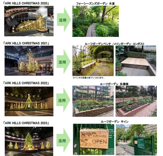 また、2020年から毎年使用したクリスマスツリーは、ガーデンの木道やコンポスト、サインなどに生まれ変わり、街のさまざまな場所で活用されています。これまでのクリスマスツリーの活用について注目してみるのも、本年ならではの楽しみ方かもしれません。