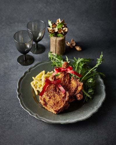 鶏もも肉丸ごと1本を豪快に揚げた、ボリュームたっぷりのクリスマスチキン。大ぶりで柔らかい外もも肉を、オリジナルで配合したこだわりのスパイスで味付けしています。衣はザクザク、中身はジューシーな食感です。食欲をそそる味わいで、ビールやワインなど、さまざまなドリンクとも相性抜群。どなたにも好まれる、パーティの主役になること間違いなしのメニューです。