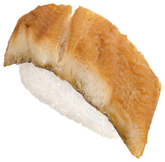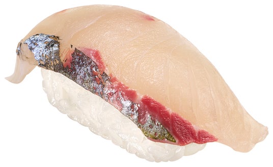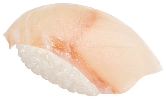 完全養殖という天然資源を減らすことなく、計画的な生産ができるという環境に配慮したかんぱちを使用しています。身質が締まり、しっとりとした上質な脂の乗りと旨みが特長です。6月に旬を迎えるため、万博店舗でも一番うまい時期から販売を開始します。