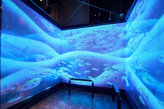 エントランスは、デジタルの大型水槽でワクワク感を演出