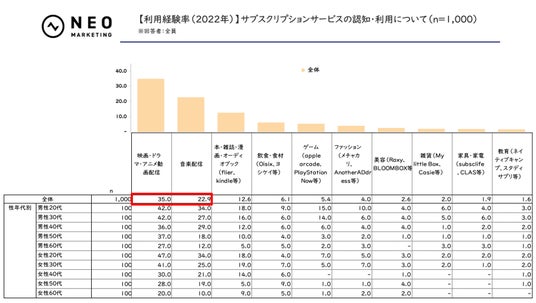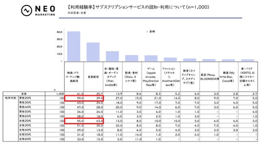 サブスク利用経験TOP2は映像系と音楽、20代が最多|定額制サービスに関する調査