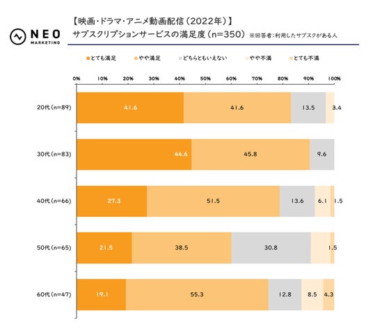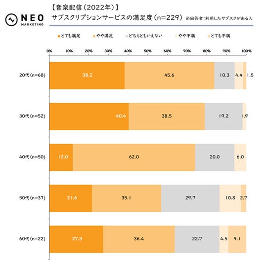 今回は2022年よりも、「映画・ドラマ・アニメ動画配信」「音楽配信」共に年代による満足度の差が少なくなっていることがわかります。