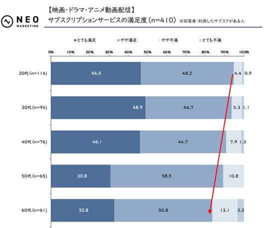 年代が高くなるほど(昔観ていた)“懐かしの名作”需要も多く、それを満たせないサービスの場合、満足度が下がってしまうのかもしれません。