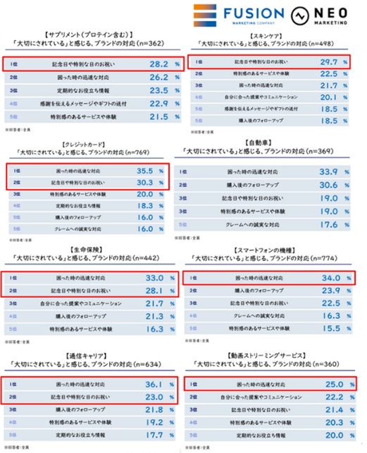 一方で、「動画ストリーミングサービス」「通信キャリア」「クレジットカード」といった無形商材の全てにおいて「困った時の迅速な対応」がトップとなっていました。