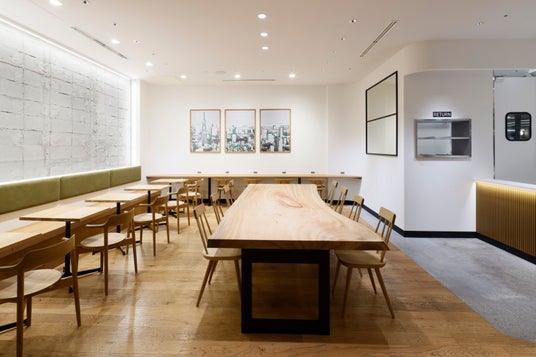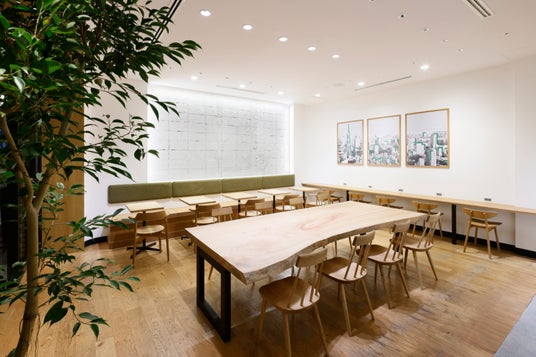店内には23席のイートインスペースを用意しました。テーブルや椅子は全て国産木材を使用しており、メインのテーブルはWithGreenで初となる一枚板を使用しています。木の温もりが感じられる落ち着いた空間で、ゆっくりと過ごしていただけます。
