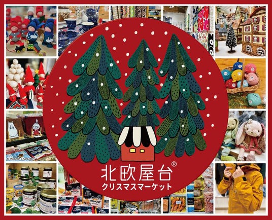 10階催物場では、北欧のさまざまなブランドやショップが集まるイベント「北欧屋台~クリスマスマーケット~」を開催中。カラフルなデザインのファブリックや陶器、ファッションアイテムからクリスマスにぴったりの雑貨、ムーミンなどのキャラクターグッズまで約15,000 点以上の北欧アイテムが揃います。