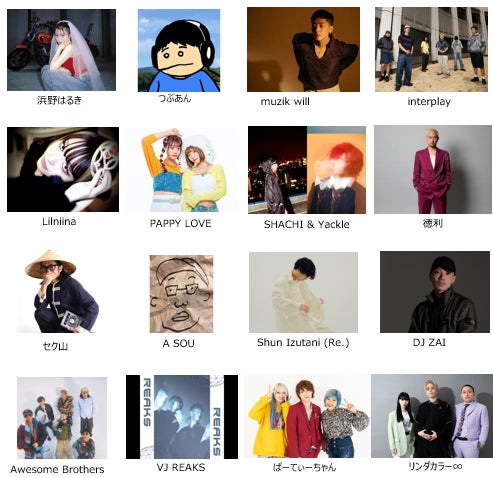 水曜日のカンパネラ、佐々木彩夏(ももいろクローバーZ)、☆Taku Takahashi (m-flo)、Novel Core、OWV、Aile The Shota、Bimi、DJ To-i(from DISH//)、佐野文哉(OWV)、森田美勇人、有華、ExWHYZ、GANG PARADE、ザ・リーサルウェポンズ、DJ ピエール中野、LEGENDオブ伝説 a.k.a. サイプレス上野、オカモトレイジ(OKAMOTO‘S)、PAS TASTA、ピーナッツくん、SHO-SENSEI!!、どんぐりず、JUMADIBA、SKRYU、Campanella、lil soft tennis、MFS、#KTちゃん、Sound‘s Deli、interplay、Lilniina、muzik will、xiangyu、水槽、Guiano、STAP Sigh Boys、lyrical school、浜野はるき、REIRIE、文坂なの、bala、PAPPY LOVE、ゆっきゅん、SHACHI & Yackle、徳利、なかねかな、セク山、YourLimitCheers(ChibiChael&Nano Dia)、つぶあん、A SOU、Shun Izutani (Re.)、DJ ZAI、Awesome Brothers、VJ REAKS、ぱーてぃーちゃん、リンダカラー∞、キンタロー。、ねんねん、sa’Toshl 、DJ Hello Kitty、DJ クロミ