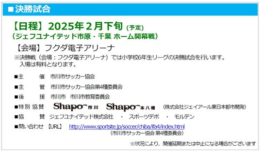 予選リーグ:国府台スポーツセンター 国分川調 節池緑地広場 稲越小 信篤小 二俣小 柏井小 富美浜小 塩焼小
