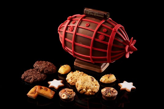 ホリデーシーズンに幸せを運んでくる飛行船をミルクチョコレートで再現。中にはクリスマス定番のジンジャークッキー、バラのシロップでコーテイングしたマドレーヌ、栗のフィナンシェ、ナッツたっぷりブラウニー、アーモンドショコラ、ザクザク触感のホワイトチョコレート&グラノーラクッキー、 ビターチョコレート&オレンジ クッキーが詰まっています。