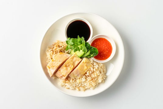 柔らかくジューシーに茹でた鶏肉、香り豊かなライスに、きゅうりのスライスを添えたシンガポールを代表するメニュー。チリソースや酸味のある生姜とニンニクのペーストなどの風味豊かな調味料を合わせ、シンプルながら奥深い香りと味わいを楽しんで。