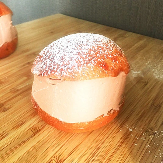 Giottoちょっと前に流行ったマリトッツォ。イタリアのローマ発祥ですが、形、大きさを変えてバー(カフェ)で朝ごはんとして食べられています。イタリア人の甘々な朝食を食べて活力に!!
