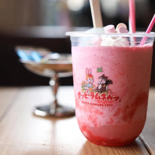 クッピーラムネカフェ昭和より続く駄菓子のクッピーラムネをイメージしたドリンクになります!甘さと酸味のあるフラッペや、レトロ感のあるクリームソーダにクッピーラムネを使用しました。一度ご賞味ください!