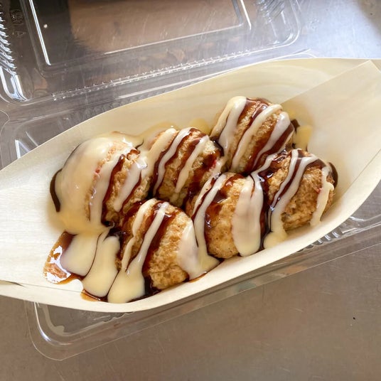 おやつショップだるま出汁が香るとろとろ系のたこ焼きです。おすすめは特製のマヨネーズをたっぷりかけたソースマヨ、しょうゆマヨです。ぜひお試しください