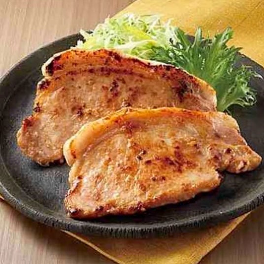 名物!カレーうどんと唐揚げのうまい店 サンビーノ特製の自家製味噌にじっくりと漬け込んで、焼き上げました。豚肉にからんだ香ばしい味噌の風味がやみつきに!! ごはんと食べるのもオススメ!(ご飯は数量限定です)