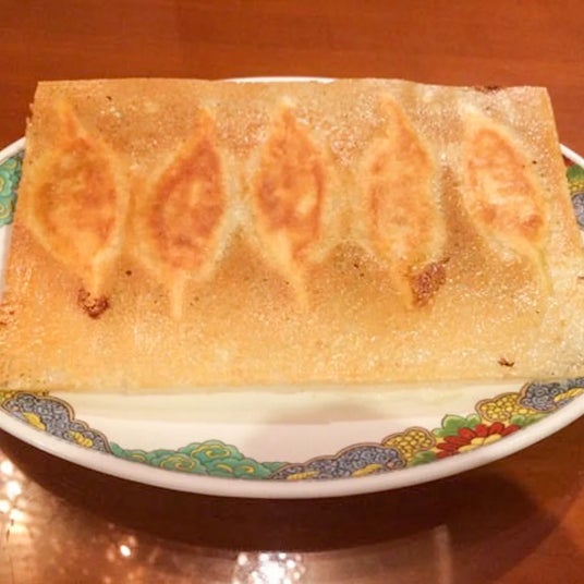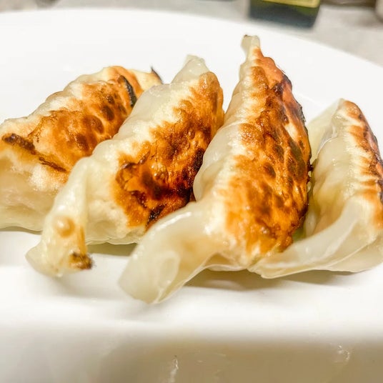 名物!カレーうどんと唐揚げのうまい店 サンビーノパリッと焼かれた皮の食感と、モチっとした皮の食感を両方楽しめ、噛むと、肉と野菜の汁がジュワー!! ビールのおつまみにも最高です。