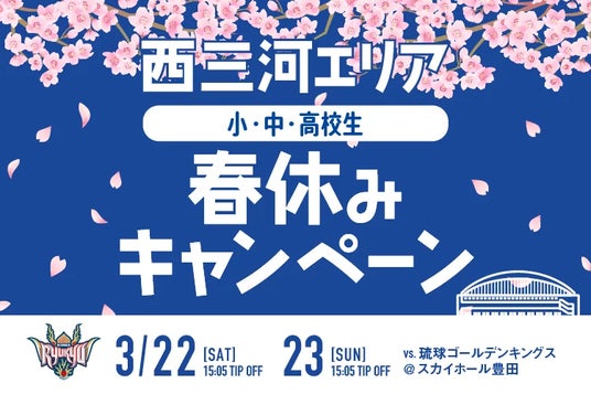 - B.LEAGUEチケットの「西三河エリア小中高生春休みキャンペーン!」よりご購入ください。