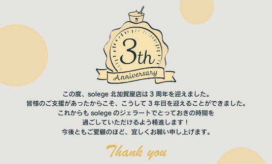 solege3周年限定メッセージカードをsolege3周年限定テイストのジェラートと共にお家で楽しんでいただければ嬉しいです。