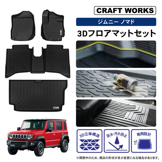 ジムニーノマド ジムニーシエラ専用 3Dフロアマット セット Amazonページを確認(AT車) Amazonページを確認(MT車) 今後の展開 CRAFT WORKS(クラフトワークス)は、今後もお客様のカーライフを快適にする商品の開発・販売を計画しています。 【CRAFTWORKS公式メディア】 楽天:https://www.rakuten.co.jp/auto1direct/ Amazon:https://www.amazon.co.jp/stores/page/46C54D85-E487-49BE-B42B-2C70791A0BE5
