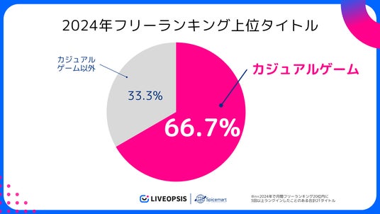 2024年フリーランキング上位66.7%がカジュアルゲーム(※)