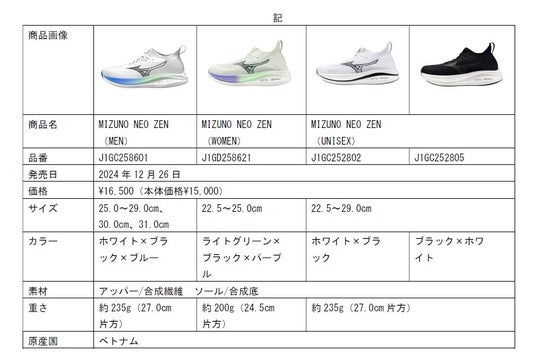 ミズノは、進化したミッドソールを搭載し、軽量性、クッション性、反発性を兼ね備えたデイリーランニングシューズ「MIZUNO NEO ZEN(ミズノネオゼン)」を12月26日に全国のミズノランニング品取扱店で発売します。