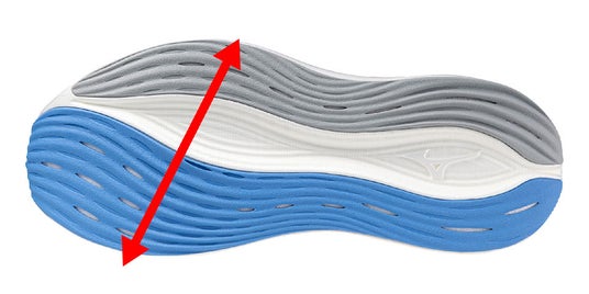「MIZUNO NEO ZEN」には、ミッドソールに『MIZUNO ENERZY NXT』を超臨界発泡技術で進化させた素材を使用しています。これにより前足部のクッション性が約83%※1、反発性が約66%※1、中足部のクッション性が約48%※1、反発性が約54%※1向上しました。