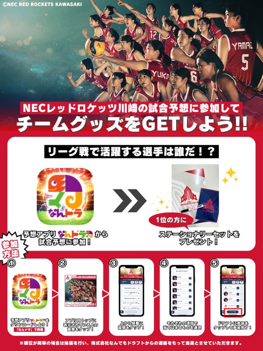 スポーツ予想アプリ「なんドラ」でNECレッドロケッツ川崎の12月28日(土)、29日(日)の活躍選手&試合展開予想を開催!