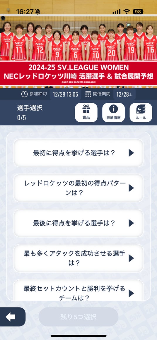 予想1位の方にはNECレッドロケッツ川崎 ステーショナリーセットがプレゼントされます!