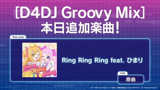 株式会社DONUTS(本社:東京都渋谷区、代表取締役:西村啓成)は、スマートフォン向けリズムゲーム「D4DJ Groovy Mix」(以下グルミク)にて、アニメ『ひみつのアイプリ』2期オープニング主題歌「Ring Ring Ring feat. ひまり」を4月6日(日)10:00に実装いたしました。