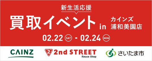 株式会社カインズ(本部:埼玉県本庄市、代表取締役社長 CEO:高家 正行、以下「カインズ」)は、株式会社セカンドストリート(本社:愛知県名古屋市中区、代表取締役社長:一戸 綱樹、以下「セカンドストリート」)と 埼玉県さいたま市(市長:清水 勇人)と協働し、2025年2月22日(土)~24日(月・祝)の3日間、カインズ 浦和美園店にて「新生活応援買取イベント」を実施します。