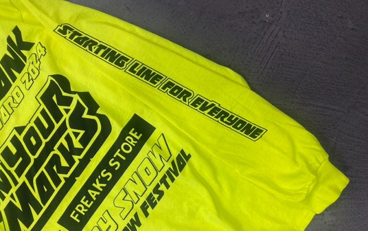 「STRATING LINE FOR EVERYONE」=「ここがみんなのスタートライン」をFREAK'S STOREらしいデザインに落とし込み、プリントしました。