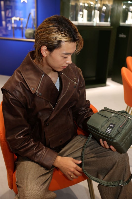 限定モデル「パイロット ビッグデイト フライバック ポーター エディション」を着用し、今回のコラボレーションの世界観に合わせたコーディネートで登場した竹内さんは限定モデルに関して「ついに!ポーターとのコラボが来たなと、僕自身テンションがすごく上がりました。お互いのブランドの素敵なところを融合してできている一本だと思います。」とコメント。